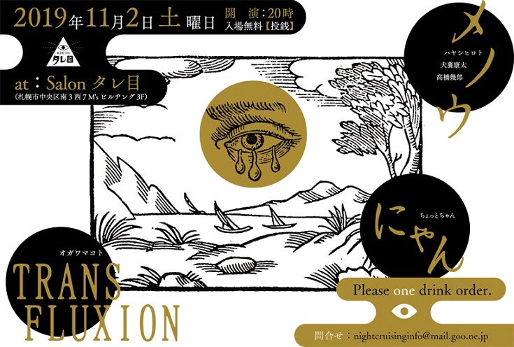 出演:メノウ(ハヤシヒロト、犬養康太、橋口順平、高橋幾郎)TRANSFLUXION にゃん(ちょっとちゃん)