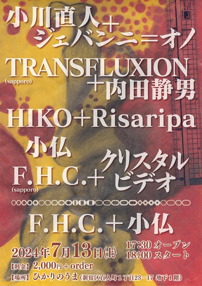 小川直人+ジェバンニ=オノTRANSFLUXION(札幌)+ 内田静男HIKO+Risaripa小仏(山梨) F.H.C.(札幌)F.H.C.+小仏コラボレーション